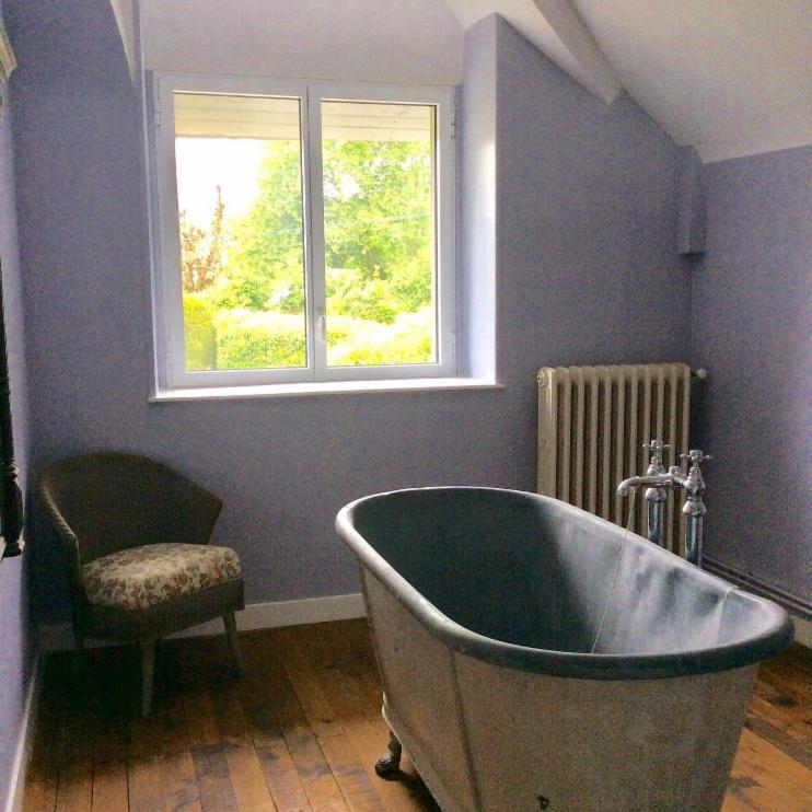 Plantagenet en-suite bathroom features a 19th Century zinc Saracen bath and has a wash-hand basin. The private W.C. is adjacent.